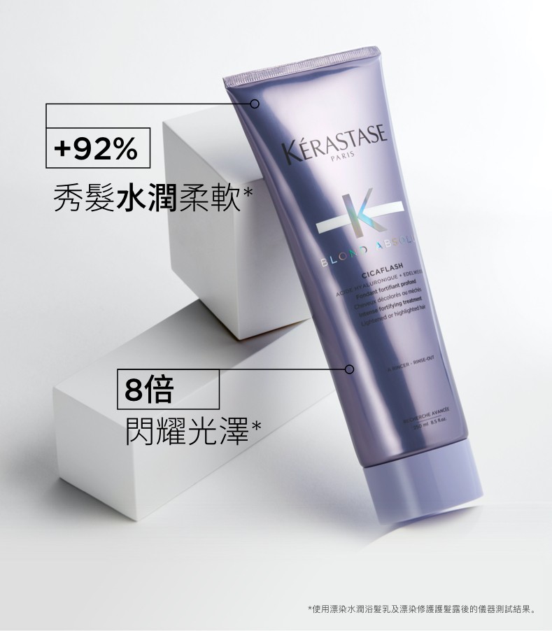 本商品每單限購5件。高端專研系列,漂染秀髮修護救星,專為漂染秀髮而設的漂染療程後*護理。助力時尚前衛達人,漂染修護護髮露蘊含珍稀雪絨花及透明質酸,輕盈修護、修復髮纖,煥發髮絲水光質感。