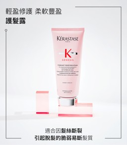 浴髮後將護髮露塗抹於濕髮上,乳化並沖洗乾淨。輕盈修護、強化髮纖,髮絲柔軟豐盈。