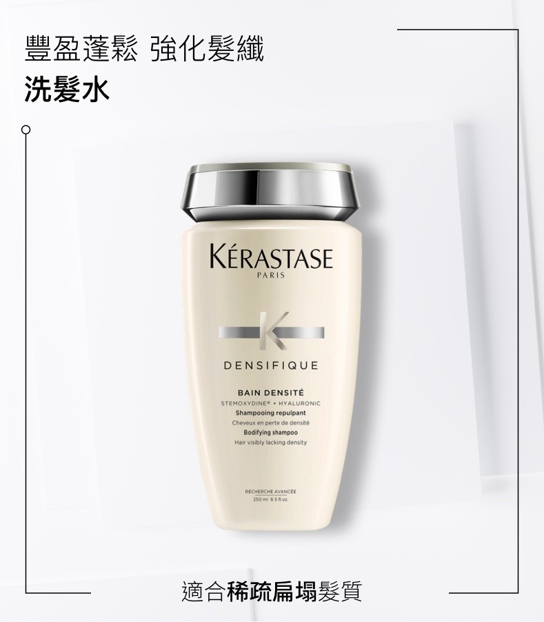 本商品每單限購5件。壓力過大、睡眠不足、先天因素等導致髮質日漸稀疏,扁塌難以造型,濃密新髮系列針對扁塌稀疏髮絲,卓效提升秀髮豐盈強韌及濃密度,拯救扁塌秀髮。締造濃密髮絲效果的浴髮乳,強化髮絲纖維,為秀髮增添豐厚質感、恢復自然彈性。
