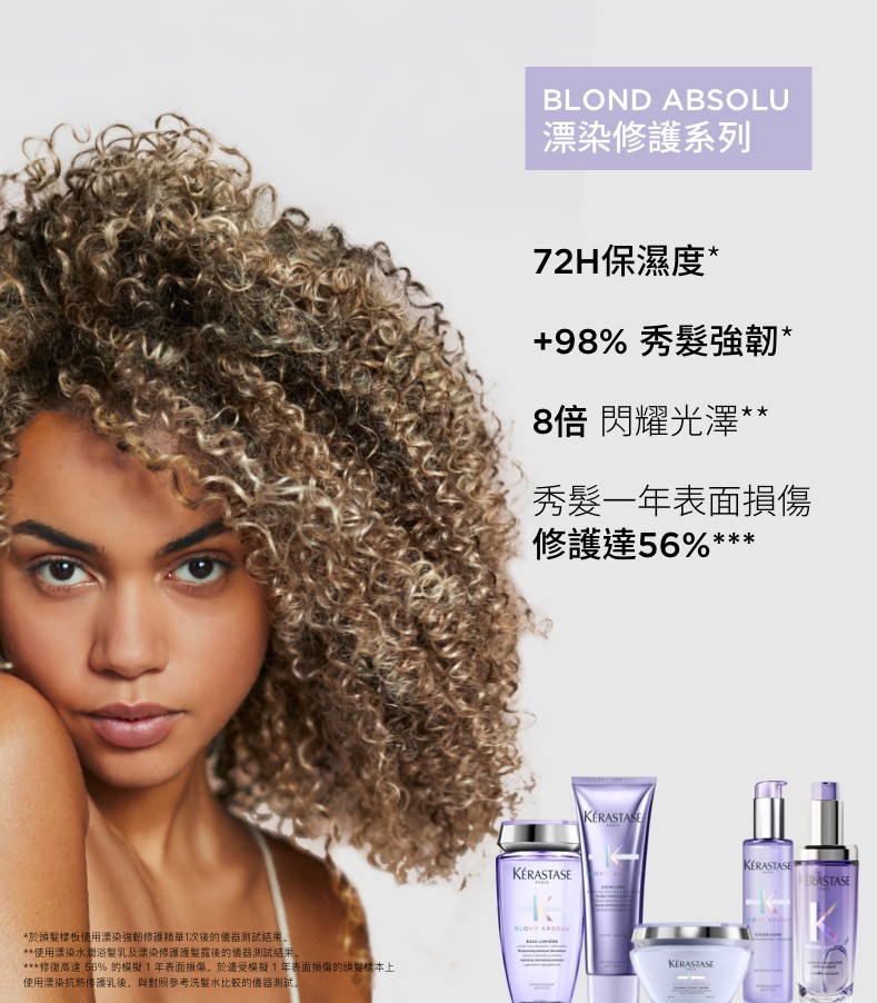 本商品每單限購5件。高端專研系列,漂染秀髮修護救星,專為漂染秀髮而設的漂染療程後*護理。適合漂成淺色或挑漂的受損髮絲,提升漂染後秀髮強韌度91%**,提供230℃抗熱保護**,增強髮絲對外界侵害的防禦力,珍稀雪絨花成分有助於深層滋養髮纖、減少分叉,秀髮光澤提升2倍^。
