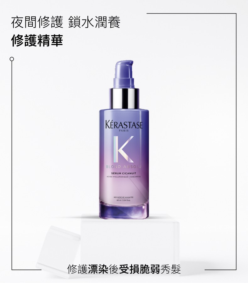 本商品每單限購5件。高端專研系列,漂染秀髮修護救星,專為漂染秀髮而設的漂染療程後*護理。巴黎卡詩首款夜間修復精華,白色霜狀凝膠質感,夜間深層修復漂後受損髮絲,為秀髮注入水分,有助減少髮尾開叉及斷裂,秀髮保濕+74%^,髮尾開叉-53%^。